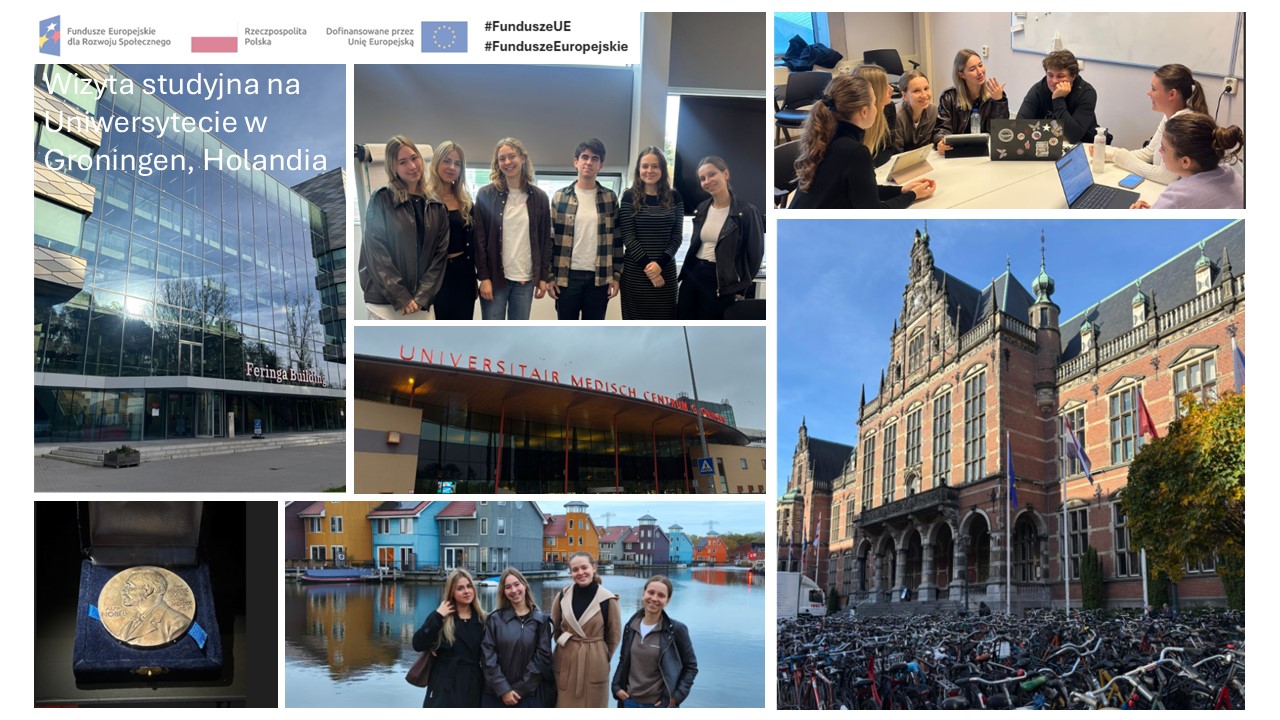 W ramach projektu UE poświęconego rozwijaniu tutoringu studenckiego, realizowanego ze środków ministerialnego programu „Wsparcie studentów w zakresie podniesienia ich kompetencji i umiejętności” (Zaproszenie Ministra Nauki i Szkolnictwa Wyższego – nabór II, FERS.01.05-IP.08-0217/23), studentki kierunku lekarskiego działające w SKN Epigenetyki i Nanotechnologii w Medycynie „EPIGENiusz” — Julia Staniszewska, Wiktoria Ziółek, Karolina Dudzik i Jadwiga Duda — odbyły wizytę studyjną na Uniwersytecie w Groningen w Holandii. Wyjazd umożliwił im poznanie z bliska funkcjonowania tamtejszego systemu peer tutoringu, który stanowi istotny element procesu kształcenia na tym uniwersytecie. Projekt tutoringowy koordynowany jest przez dr Paulinę Dudzik i dr Kingę Kocembę-Pilarczyk.